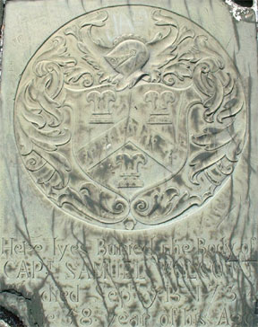 The coat-of-arms of the Walcot family of Shropshire is found on the tombstone of Samuel Wolcott of Wethersfield, Connecticut, who died in 1734. It is also found engraved on a tankard which belonged to Gov. Roger Wolcott. Roger's grandson, Gov. Oliver Wolcott, Jr., had it on the seal he used to seal his personal correspondence.